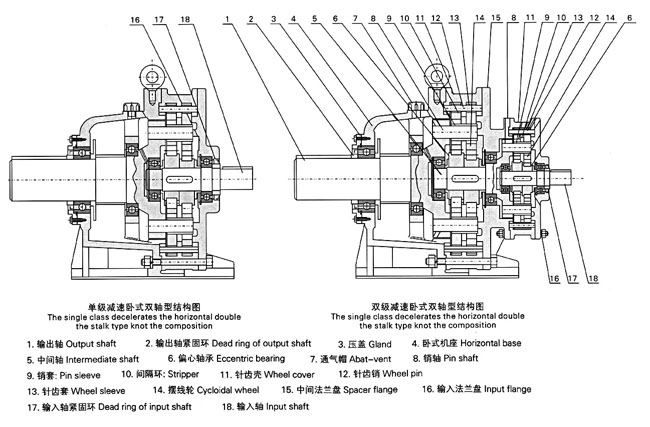 3、使用可靠,壽命長:因主要零件是采用*碳合金鋼淬火處理 (HRC58-62),再精磨而成,且擺線齒與針齒套嚙合傳遞至針齒形成滾動磨擦付,磨擦系數(shù)小,使嚙合區(qū)無相對滑動,磨損 極小,所以經(jīng)久耐用